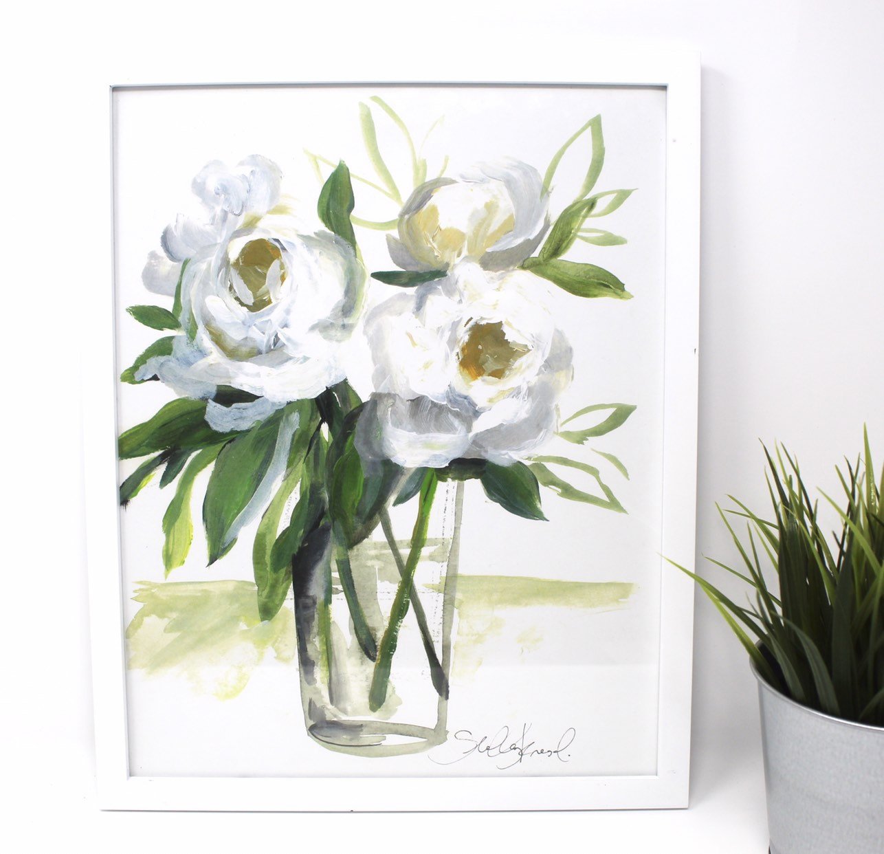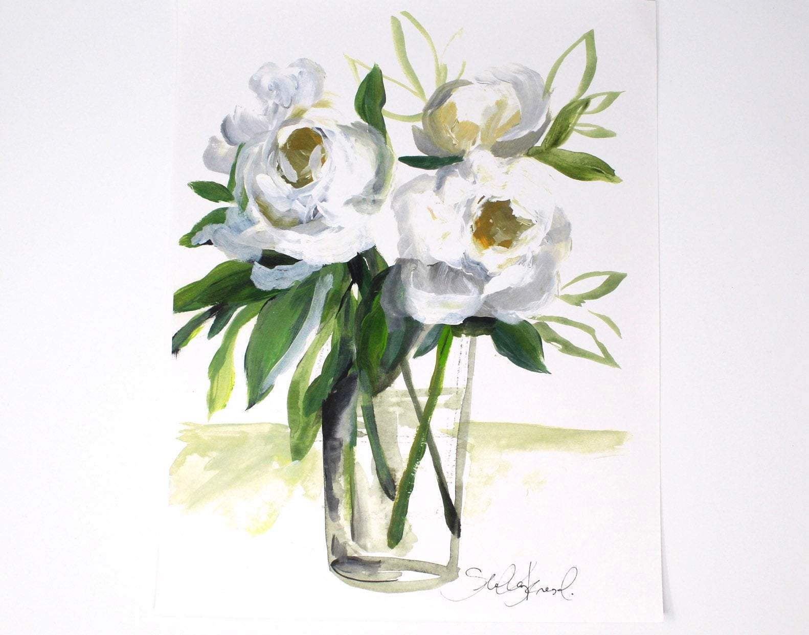 White Floral Art Print ,11x14 in, Simple Design, Floral Art, Home Decor, Flower Artwork