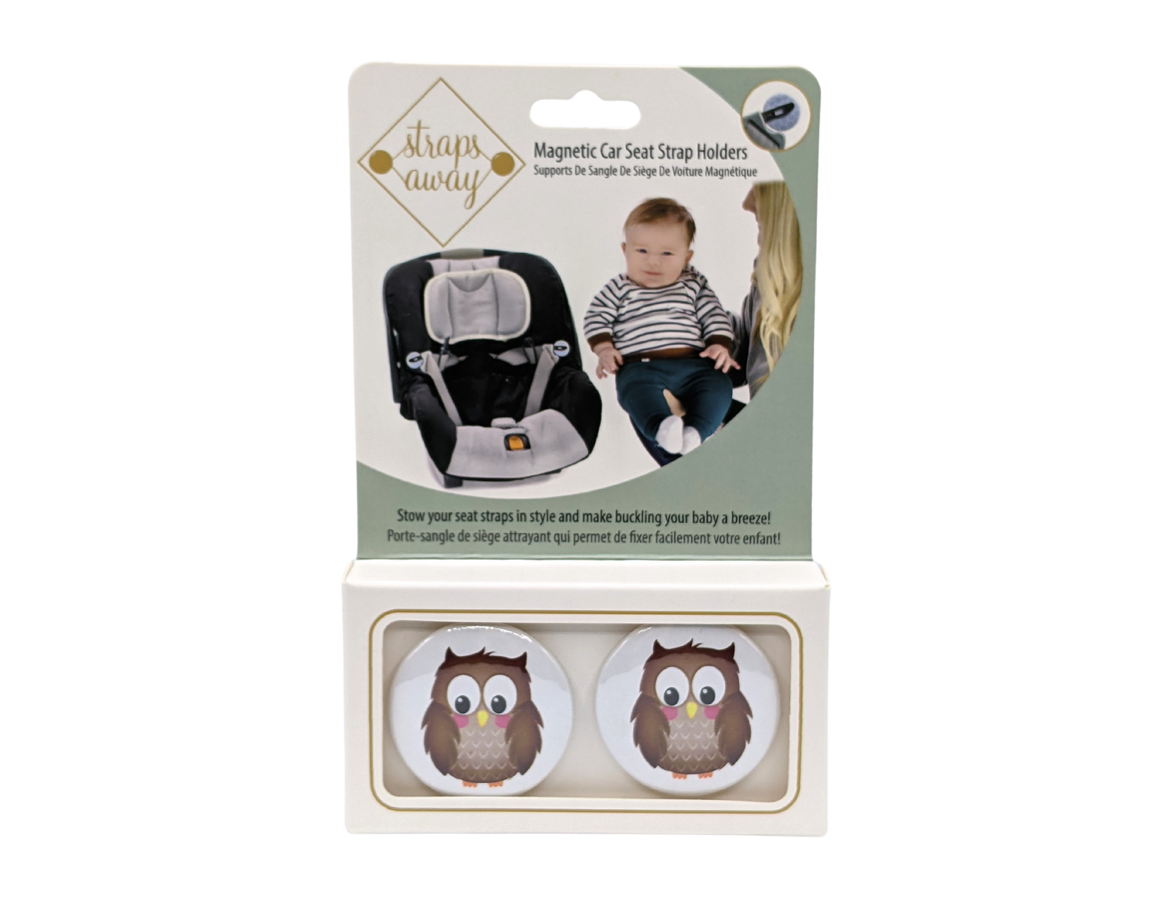Includes two car seat magnetic buttons. Each button is 3.8cm (1.5 inch) in diameter, weighs 19g, and has a pin and child-proof locking sleeve to secure to the car seat.