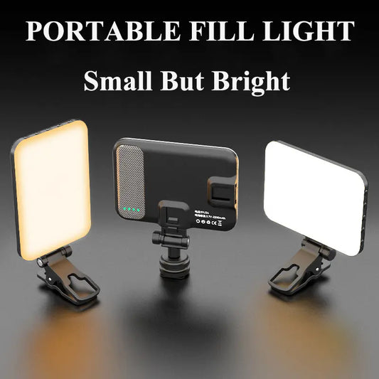 Portable LED Selfie Light with Front &Back Phone Clip for Father'S Day Gift,High Power 6O LED 2000MAH Rechargeable Camera Fill Light for Summer 3 Light Modes Clip on Ring Light for Tablet/Laptop/Camera/Tripod Zoom Call Video Fill Light for Camera Use