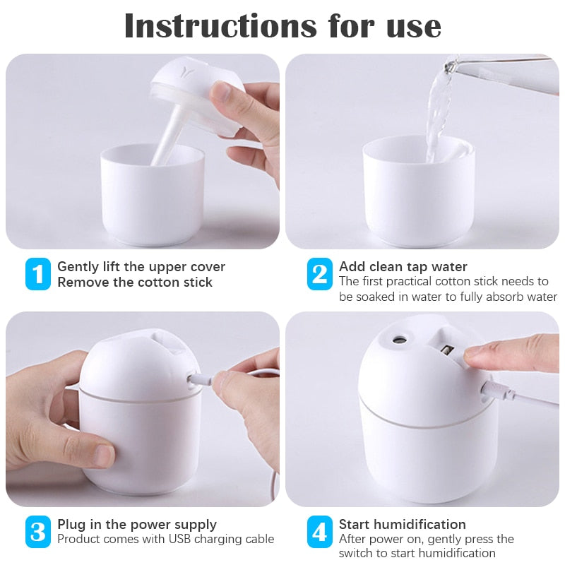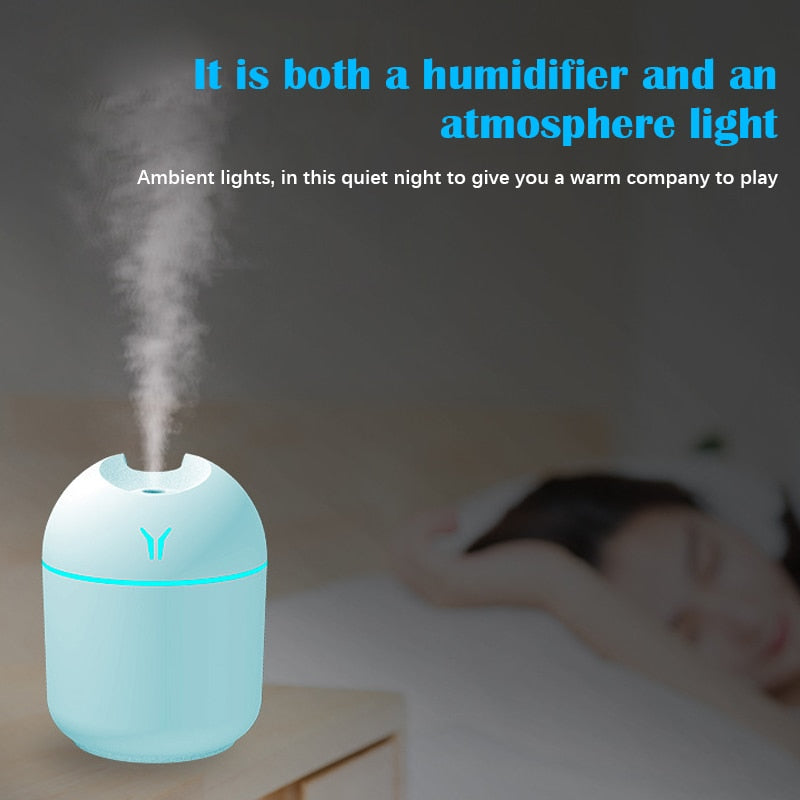 250ML Mini Ultrasonic Air Humidifier Romantic Light USB Essential Oil Diffuser Car Purifier Aroma Anion Mist Maker With LED Lamp
