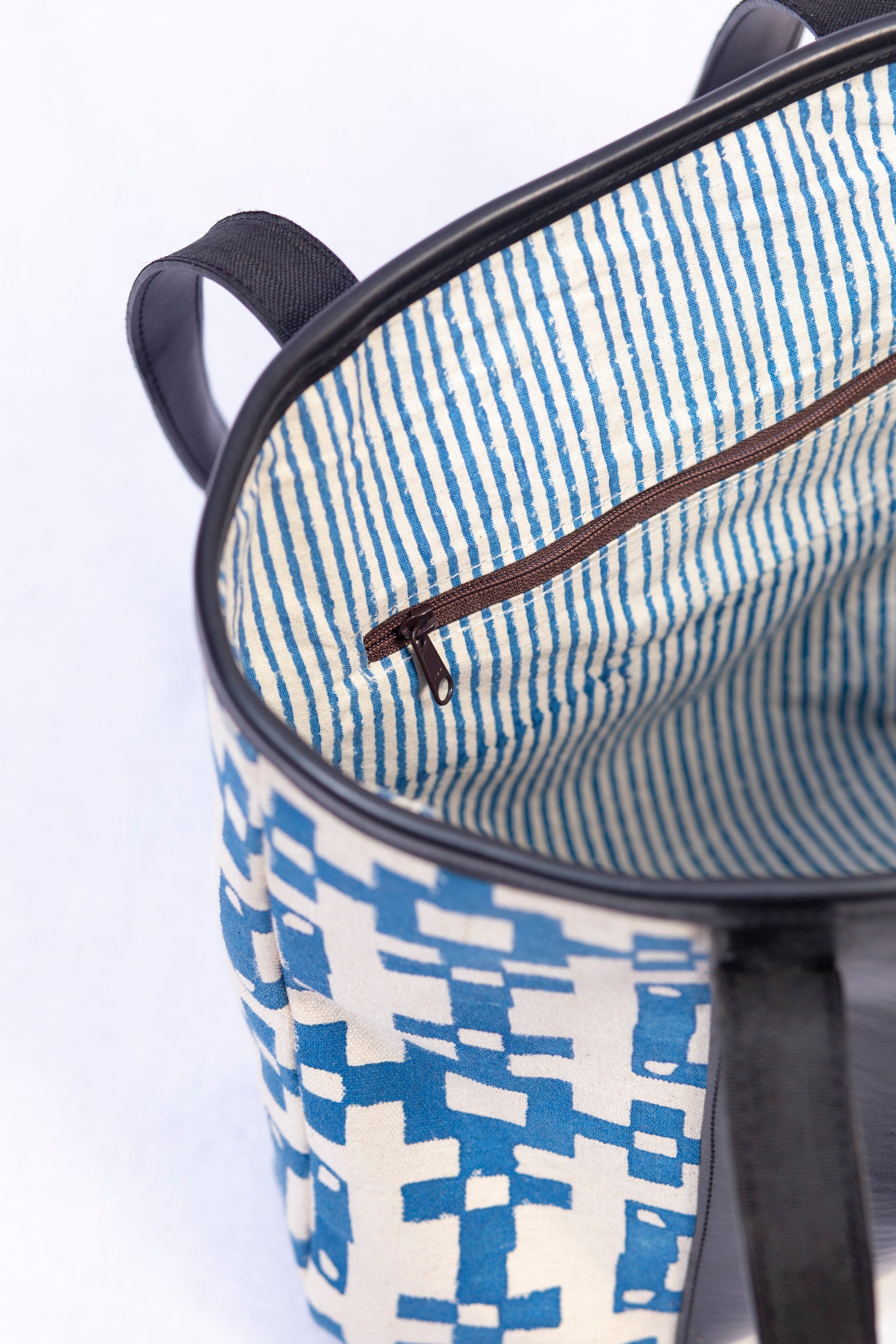 - Made from a discarded tire tube with a traditional hand-stamp pattern on Canvas