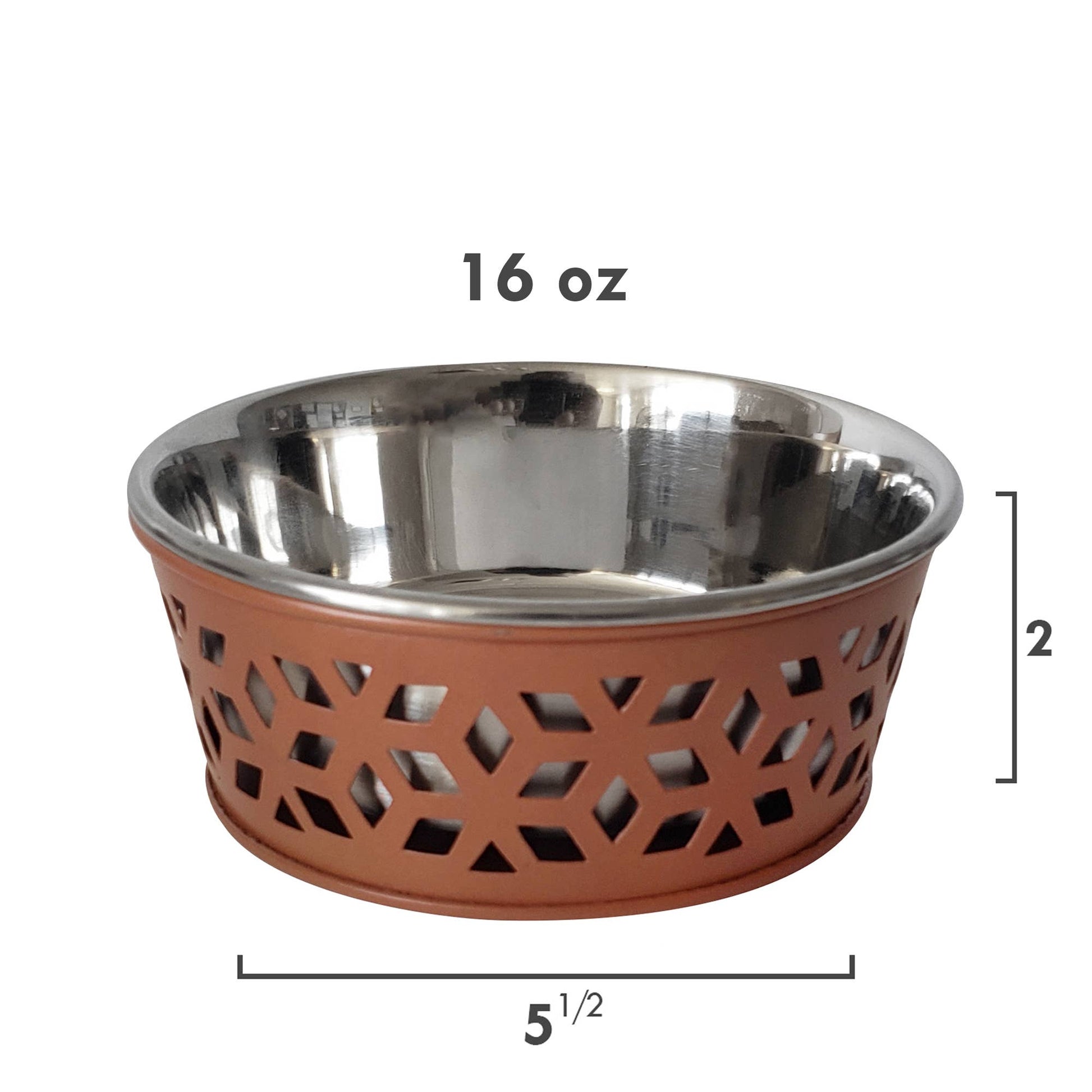 Our dogs only care about what goes inside their bowls, but we know for a fact that dog owners appreciate beautiful design. We set out to create timeless and elegant bowls, harking back to simpler times. If your home decor takes cues from magnolia farms and country farmhouse style, then these bowls will fit in seamlessly. The delicate metal punch-out design, in apricot brandy is seriously charming. Because our dogs like to make a mess while eating, we made sure they're practical too. The stainless steel bowls have a clear silicone lining to resist scratches, keeping bowls ultra hygienic and easy to clean.
