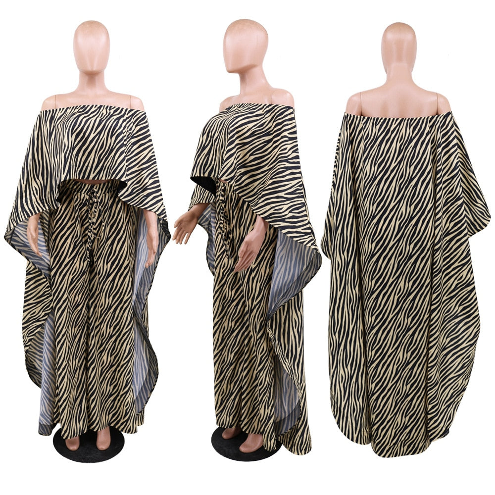 2 Piece Set Women Africa Clothes African Dashiki New Fashion Two Piece Suit Long Tops + Wide Pants Party Big Size For Lady