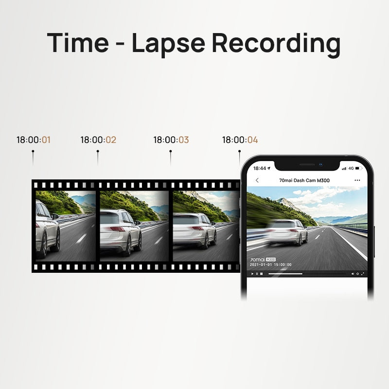 The Dash Cam M300 enables long-term continuous recording at one frame per second while the car is parked. Hours-long surveillance video can be played back in minutes, catching crucial events quickly.