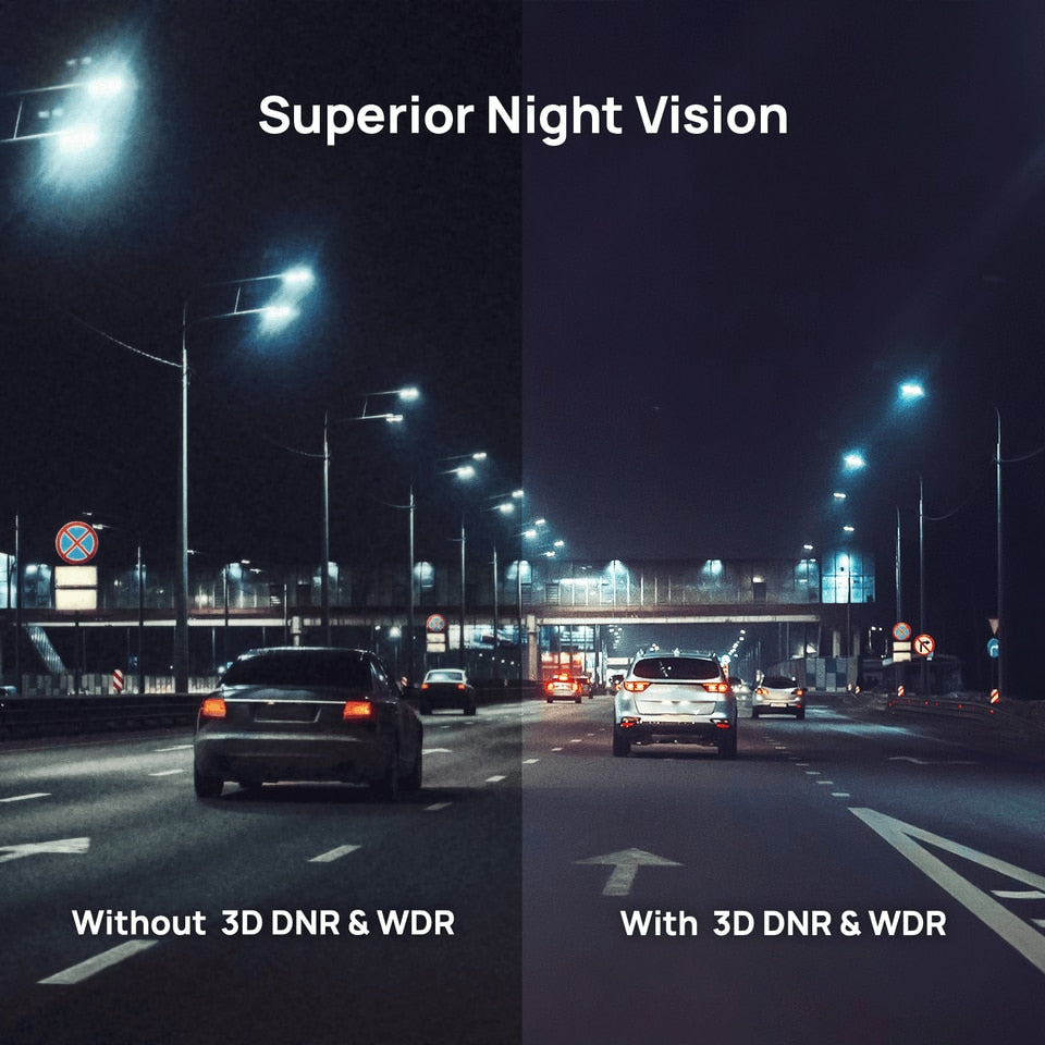 The 3D Noise Reduction algorithm removes unwanted pixels in the image, especially when recording in darker environments. With WDR image processing technology, it helps balance exposure level of the Dash Cam M300, producing clear images under any undesirable lightings.