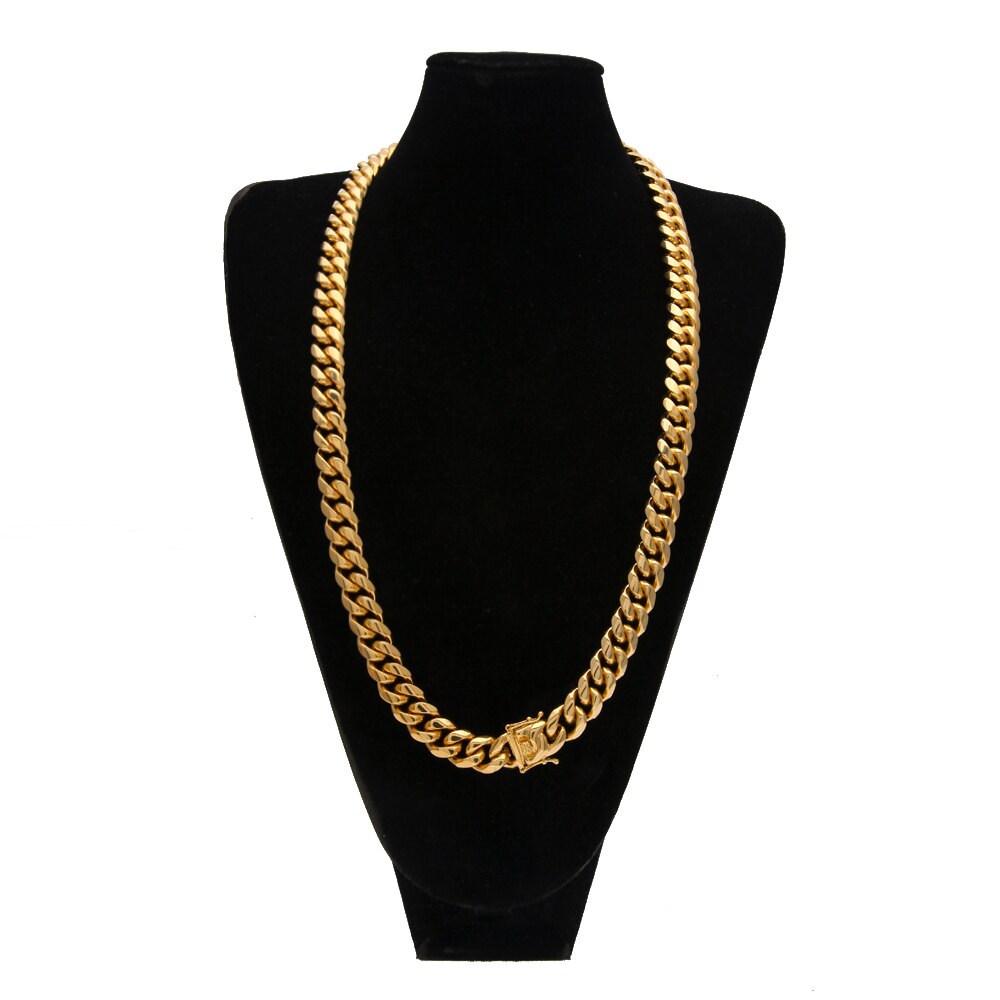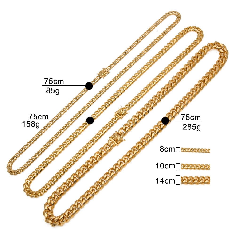 8mm/10mm/12mm/14mm Stainless Steel Curb Cuban Link Chain Punk Heavy Gold silver color Plated Cuban Necklace For Men 30inch