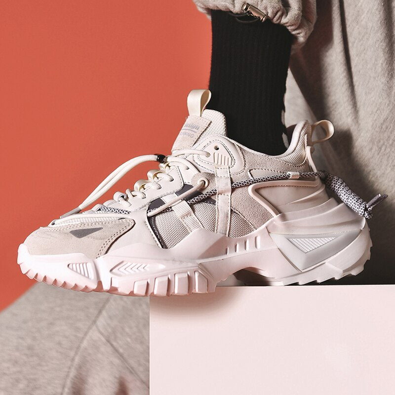 ADBOOV 2020 New Fashion Chunky Sneakers Men Genuine Leather Casual Shoes Trainers