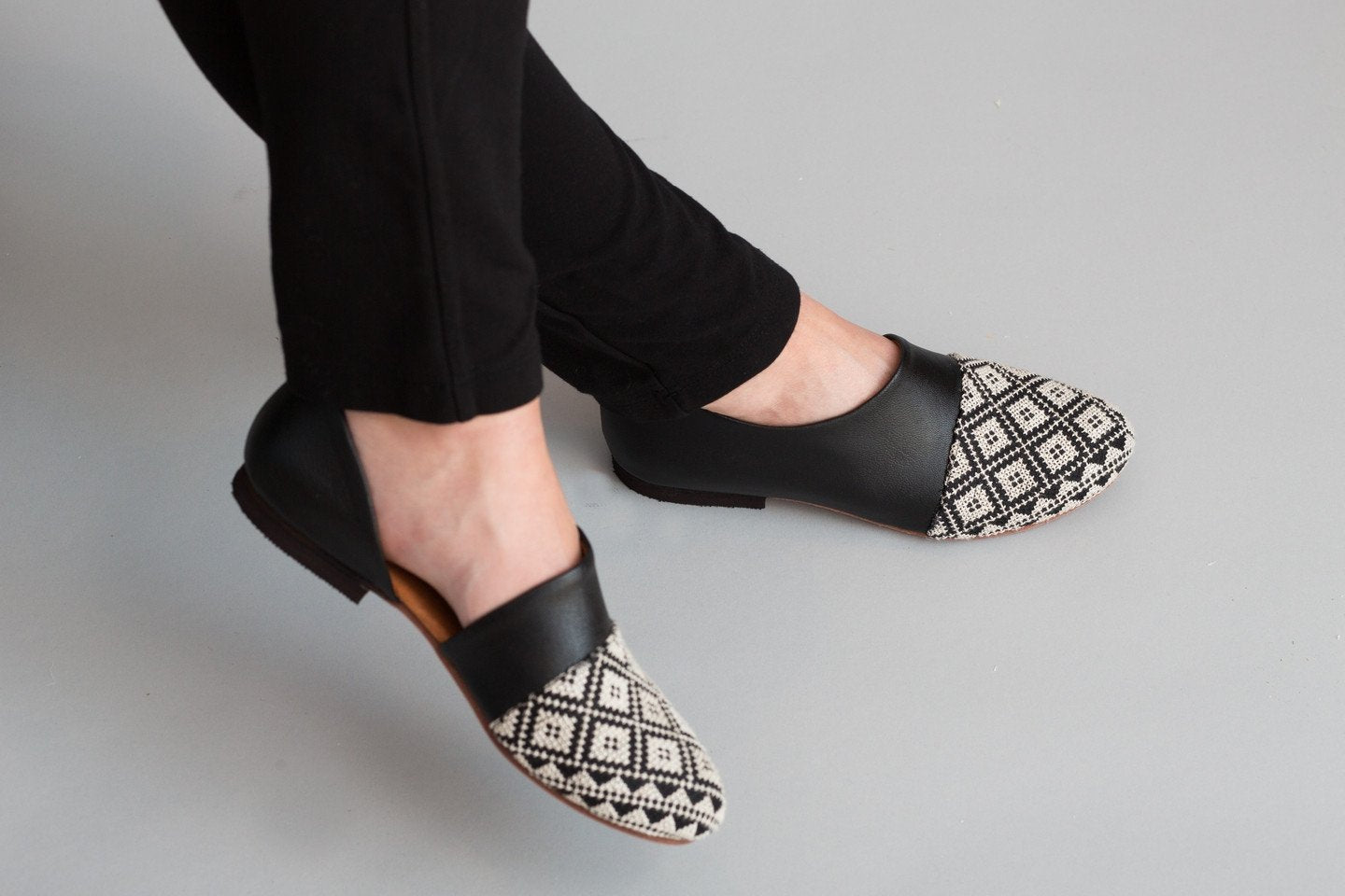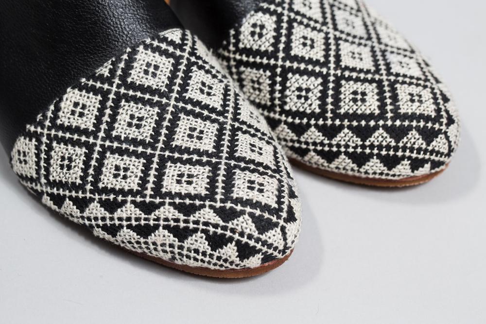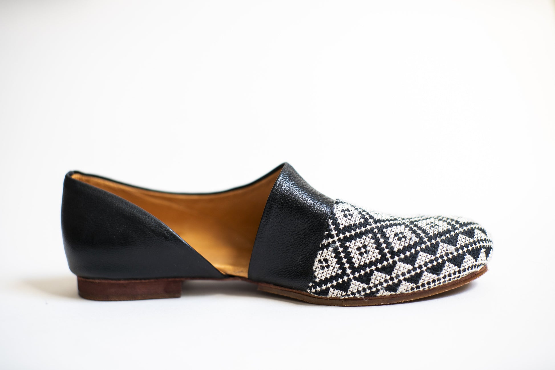 Our tatreez leather D'orsay is a modern take on a traditional Palestinian art form. Each pair is hand-embroidered by refugee and low-income women artisans with traditional Palestinian tatreez motifs and then handcrafted with locally sourced leather in Al Khalil (Hebron).