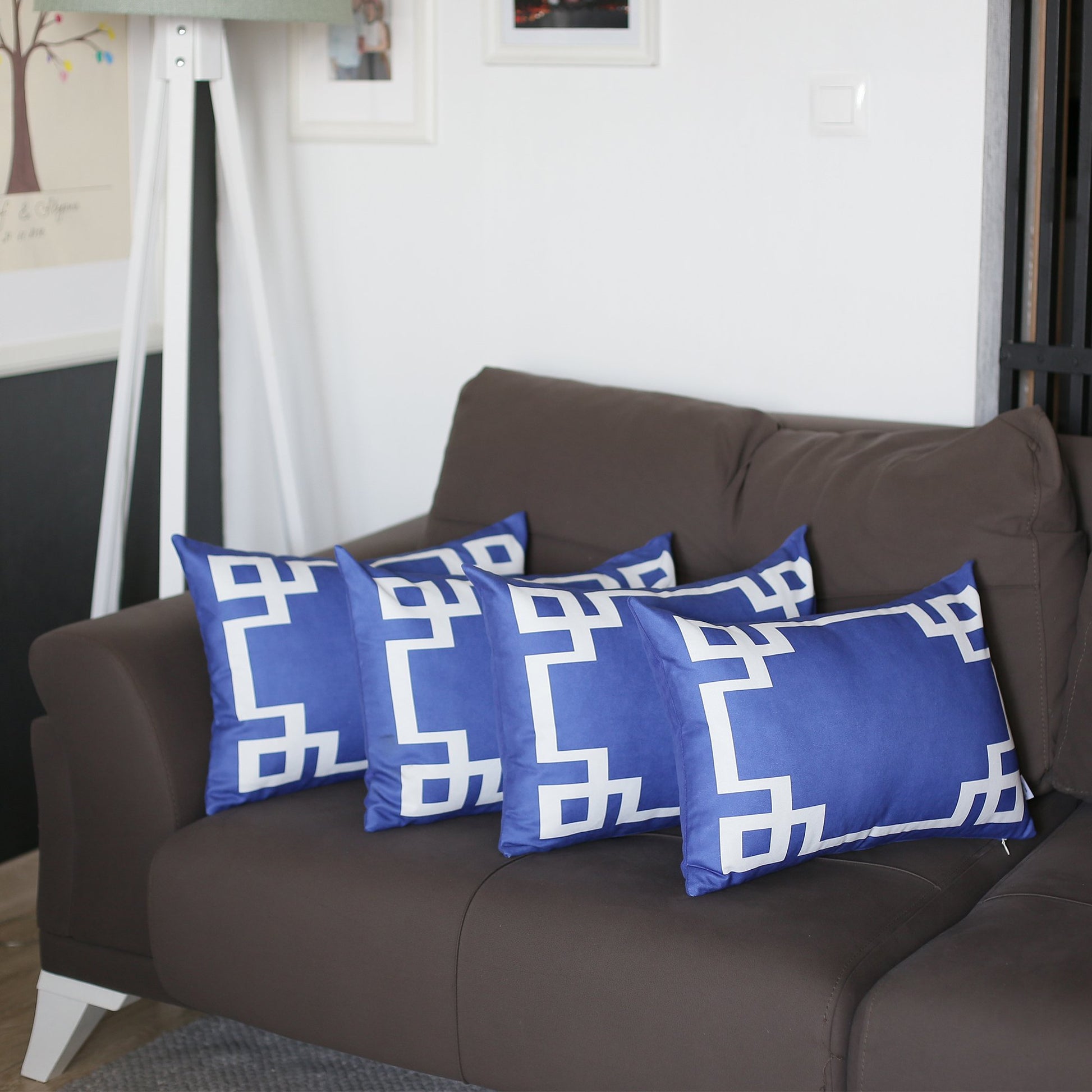 Geometric Blue&White Square Throw Pillow Cover (Set of 4)