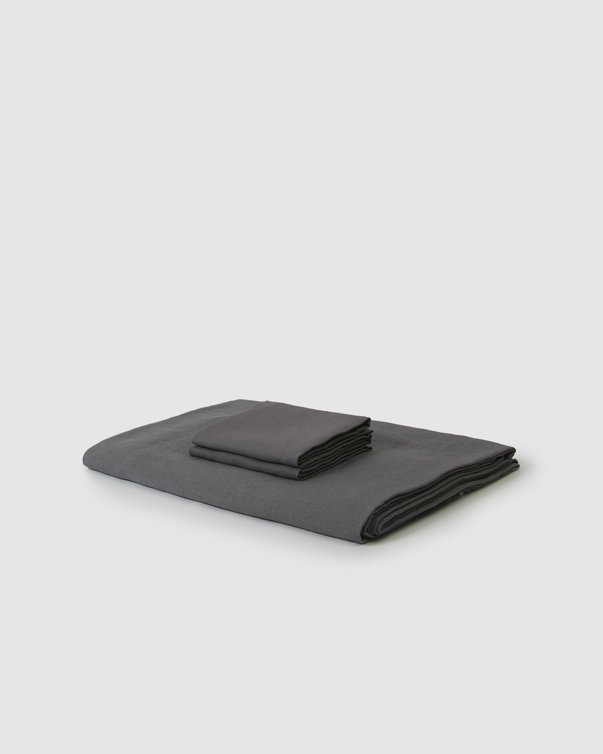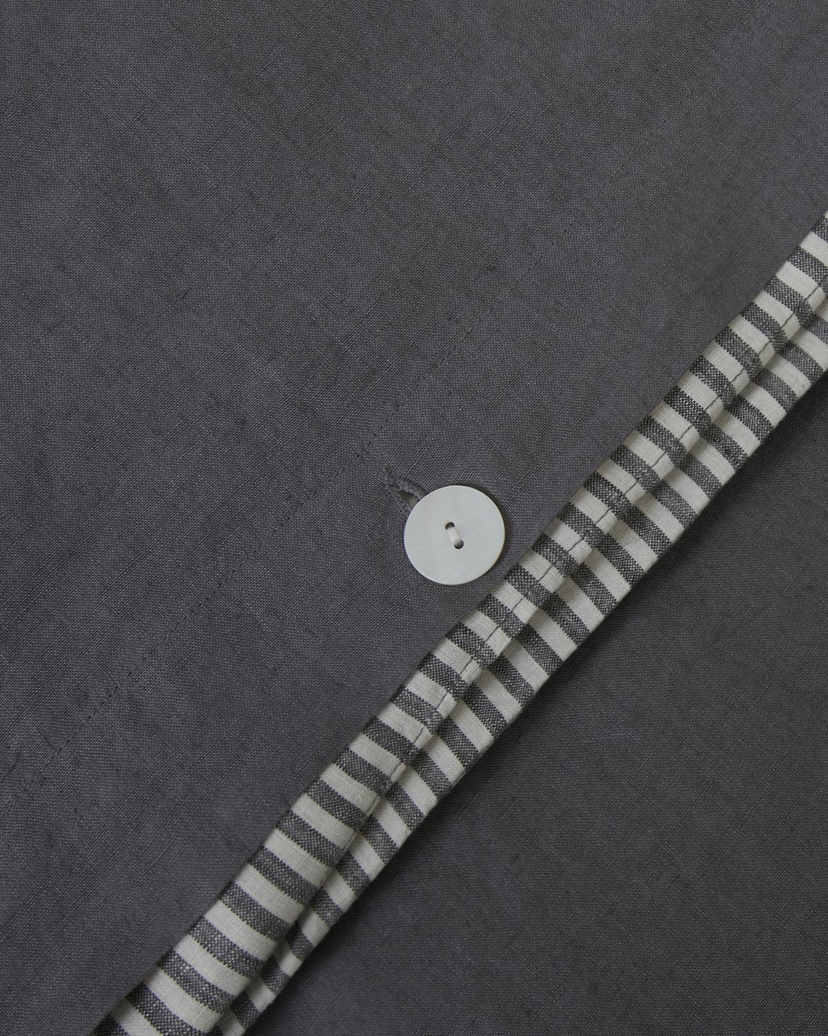 Marcel Linen Duvet Set - Storm / Storm Stripe