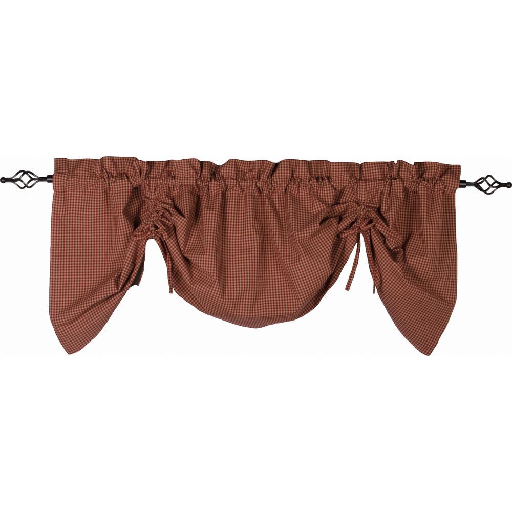Newbury Gingham Gathered Valance Barn Red - Oat - Lined