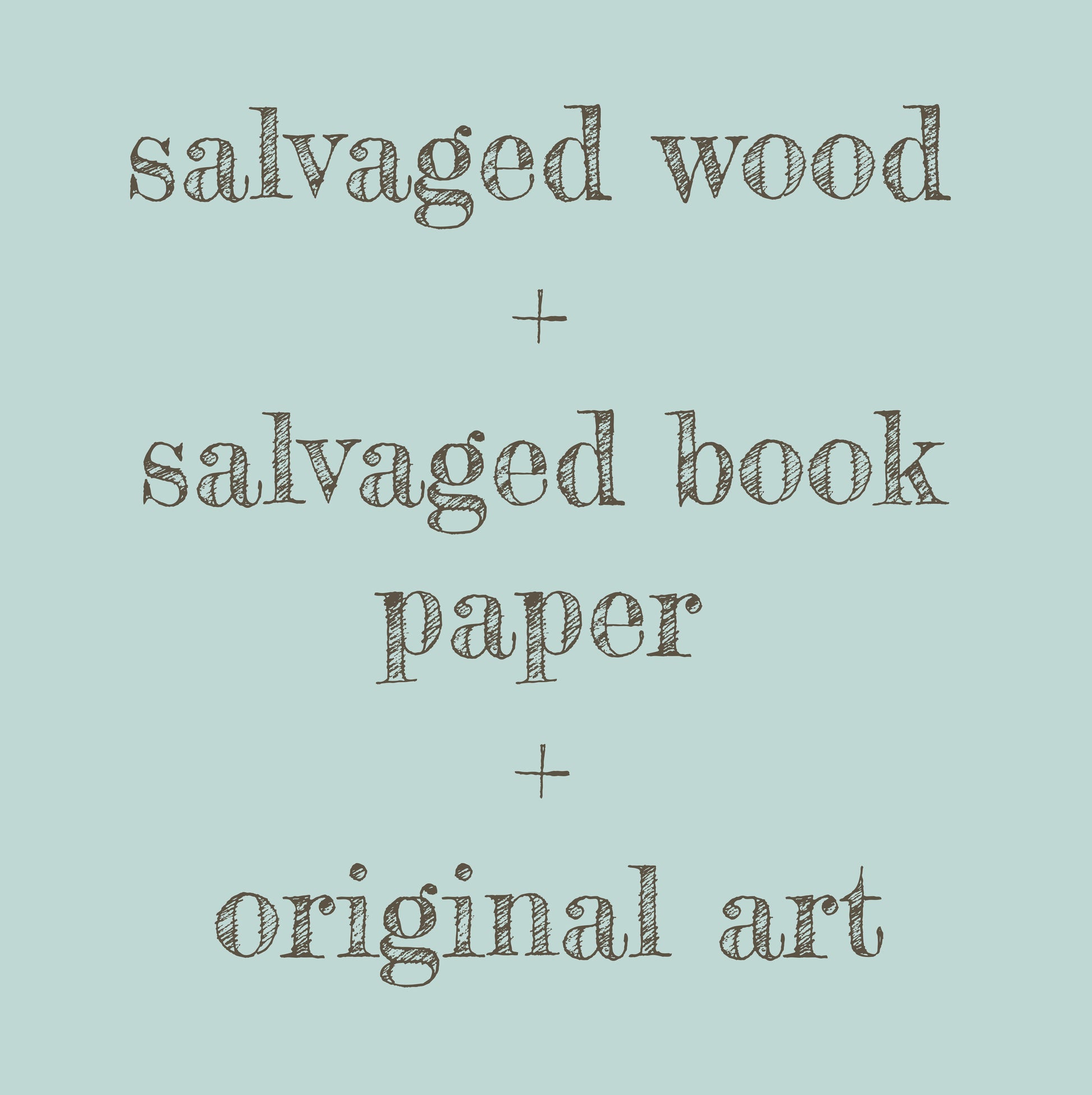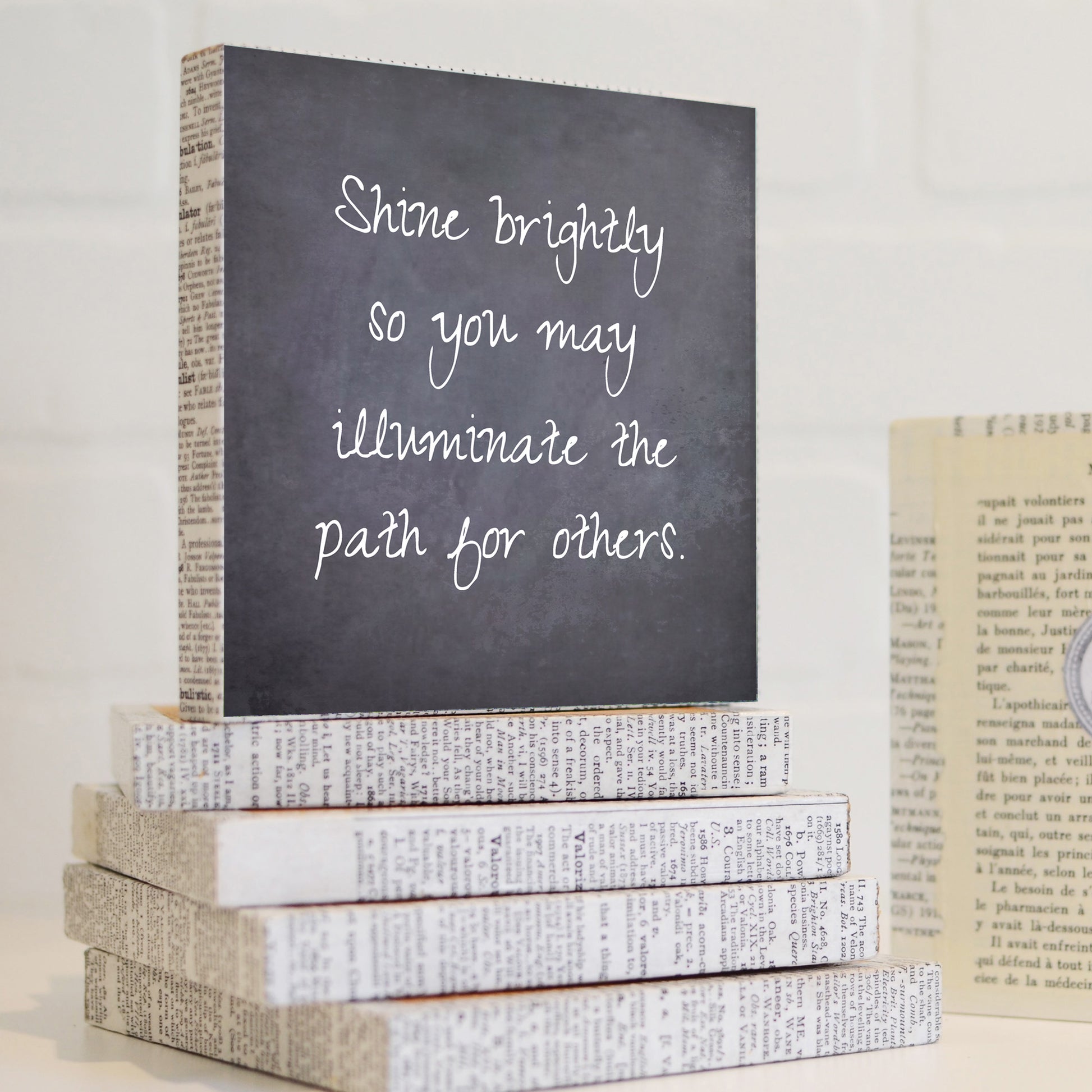 “Shine Brightly:" original artwork by Michelle Ciarlo-Hayes, carefully mounted on a reclaimed wood block that she's lovingly covered with vintage book pages.