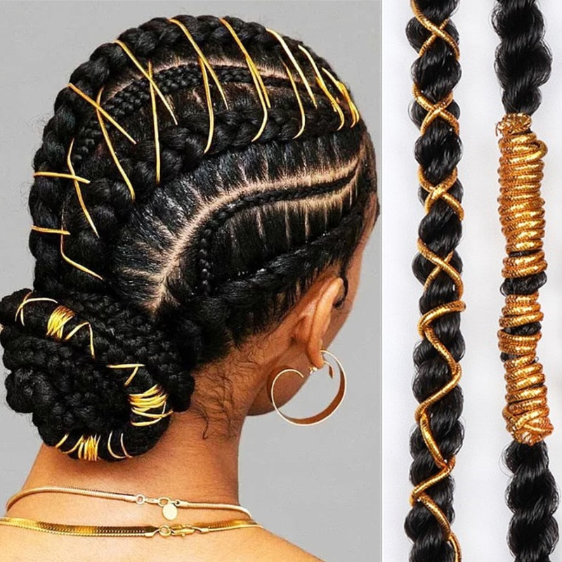 Silver Gold Braids Braiding Hair Styling Thin Shimmer Stretechable Braiding Hair Strings African Braid Braided Elastic Cord