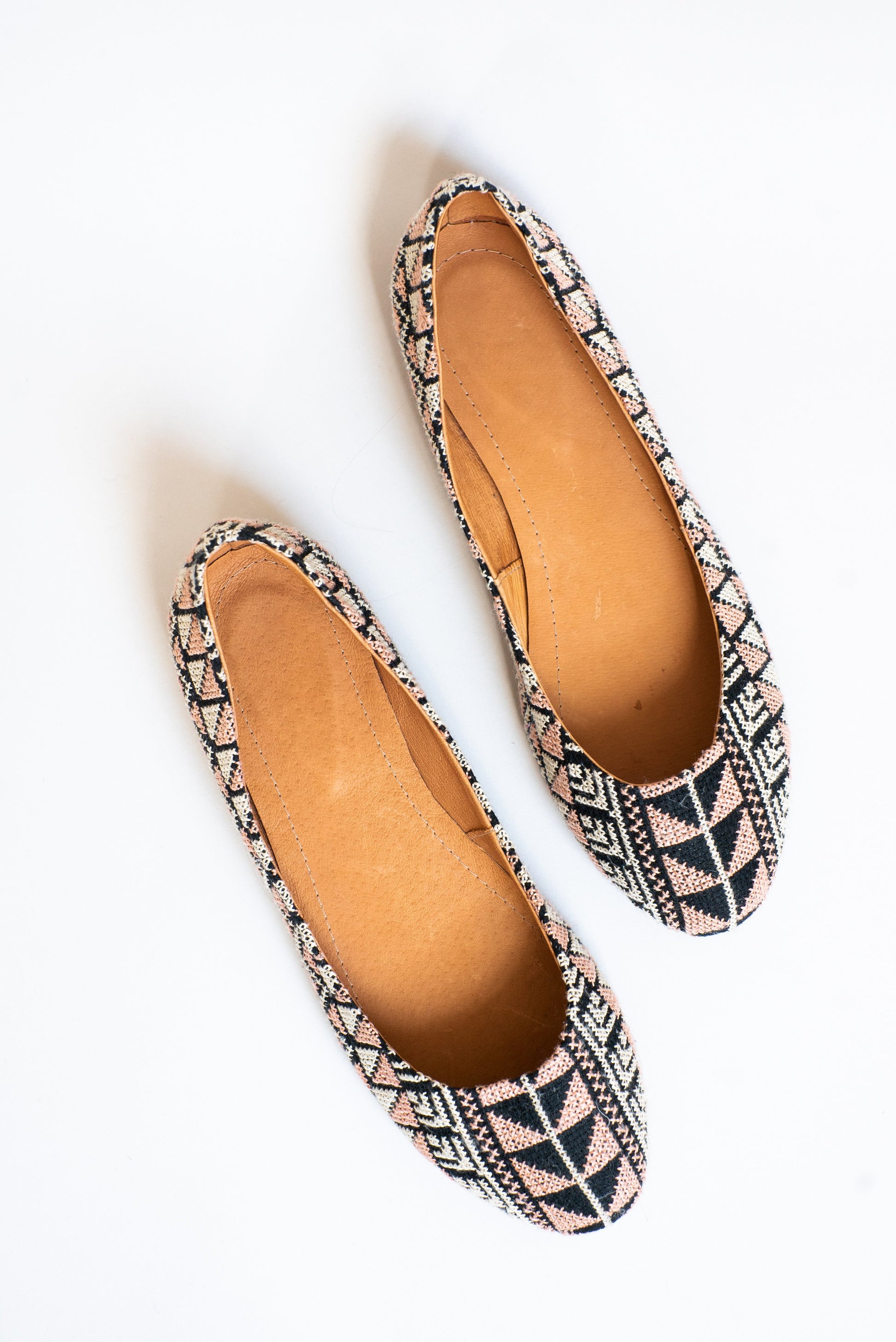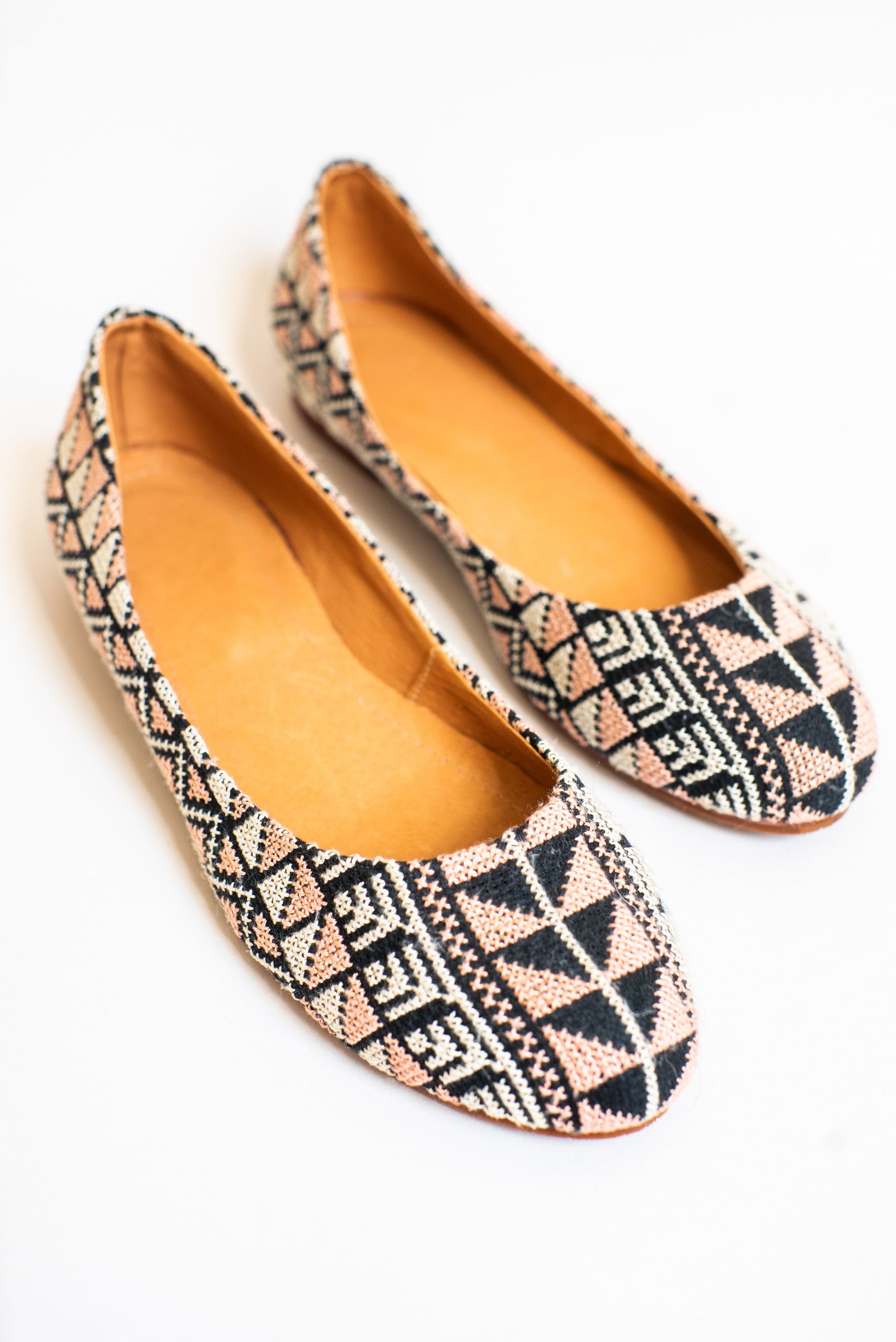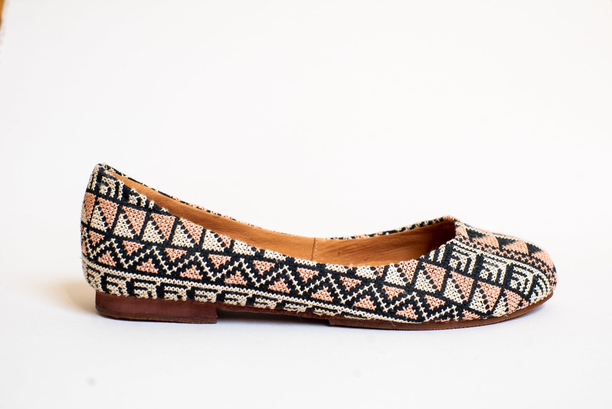 The Tatreez Flat is the perfect shoe for a day at work, running errands, or a social event. Embroidered with traditional tatreez design, this shoe will connect you with Palestinian culture.