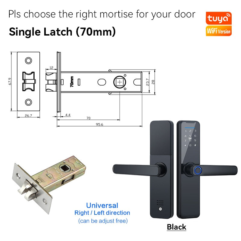 Unlock modes:: Tuya APP / Fingerprint / Password / Smart card / Key